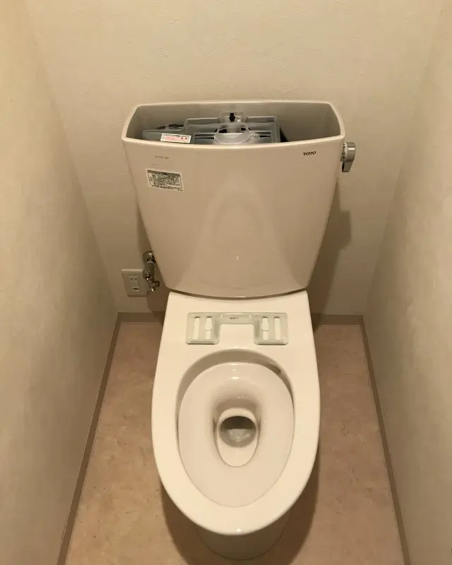 便器本体がしっかりと固定できたら、続いてトイレタンクと温水洗浄便座を取り付けていきます。