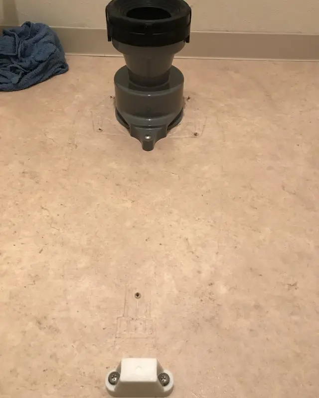正面から見てレストルームに対して真っ直ぐになるよう、向きを調整してから床に固定していきます。