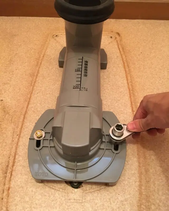 まず最初に、便器本体の接続部分をリモデルアジャスターに合わせて設置し、正面から見て真っ直ぐに角度調整します。