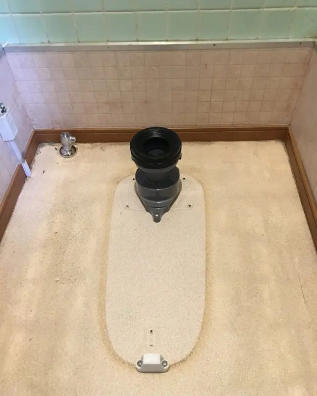今回のレストルームは、平成7年から規定されている位置に排水管が設置されていたため、排水ソケットという部品を取り付けていきます。
