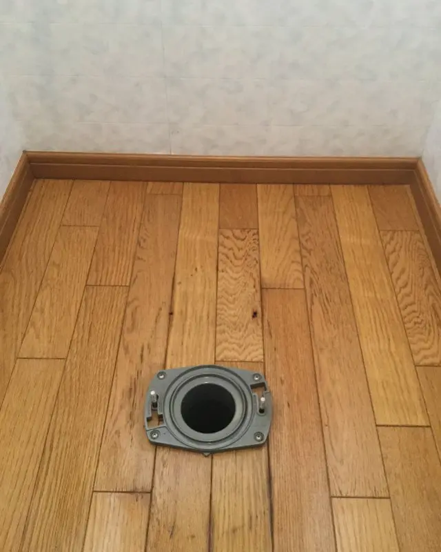 先にウォシュレットとトイレタンクを取り外したら、便器本体を撤去して排水管の穴だけが見える状態にします。