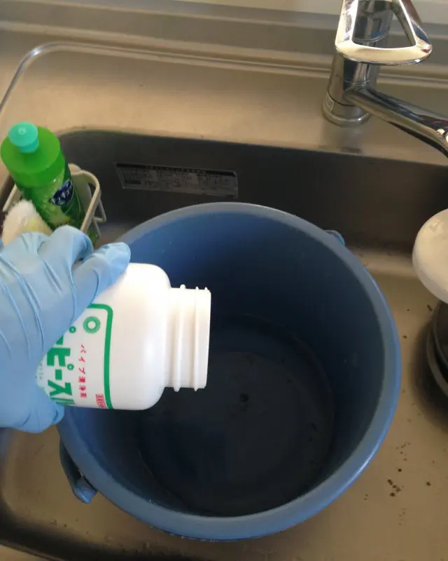 使用する薬剤は劇薬指定されている強いものになるので、水で薄めながらゆっくりと時間をかけて流していきます。