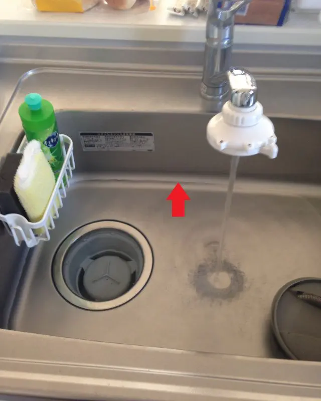 無事に洗浄作業が終わったら、先ほど流した薬剤がシンク内に残らないように、何度も水を流して徹底的に洗浄していきます。