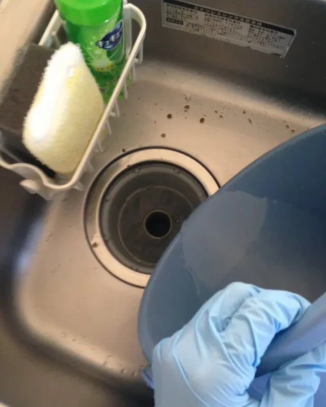 前日に食後の洗い物をしていたところ、水が流れなくなっていたようで、シンクに水が溢れてきたとの事でした。