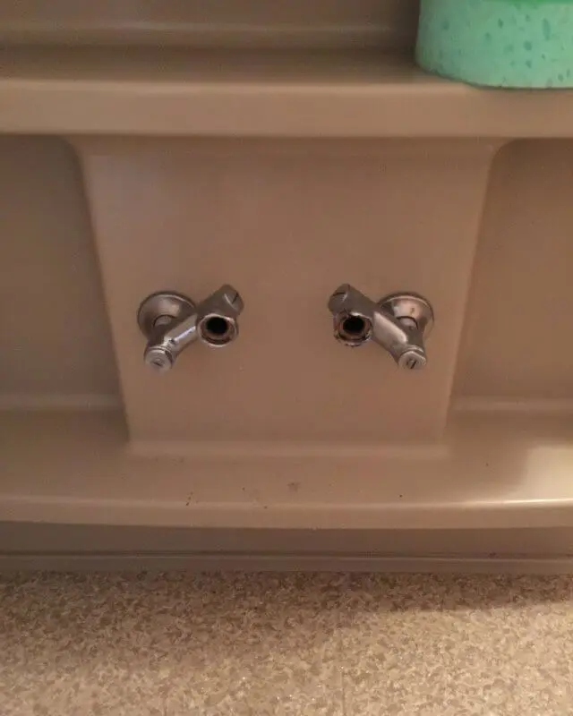 蛇口を開いて止水が出来ている事を確認した後、蛇口本体の後ろにあるナットを工具で緩め、取付脚と呼ばれる壁と蛇口を繋ぐ部分を残したまま蛇口本体を外します。