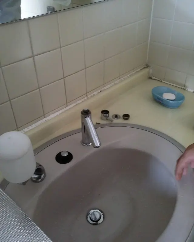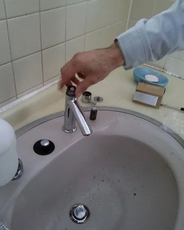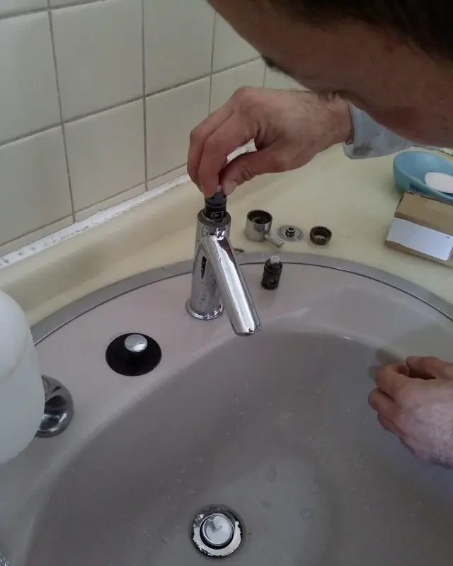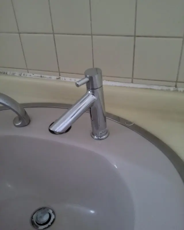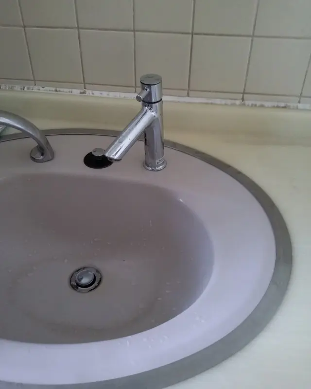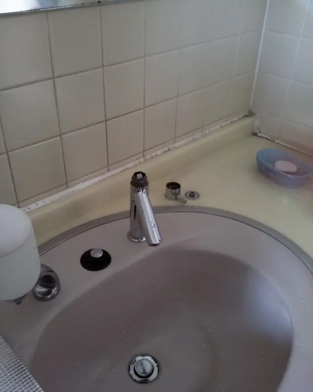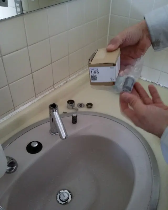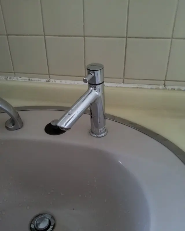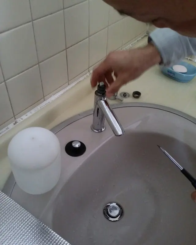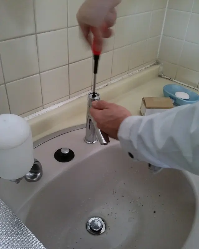 従業員専用レストルームの水漏れトラブル対応 洗面台の蛇口部品(開閉バルブ)修理・交換作業 鹿児島県鹿児島市泉町