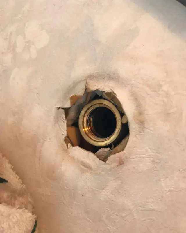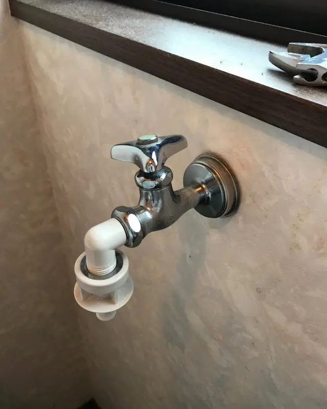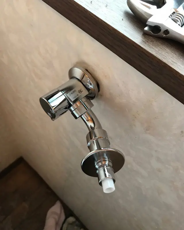 工具を使って、今取り付けてある蛇口を反時計回りに回して、壁から蛇口を取り外していきます。