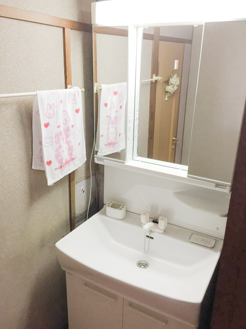 無事に化粧鏡の取り外し作業が終わったら、次は洗面台本体を取り外していきます。
