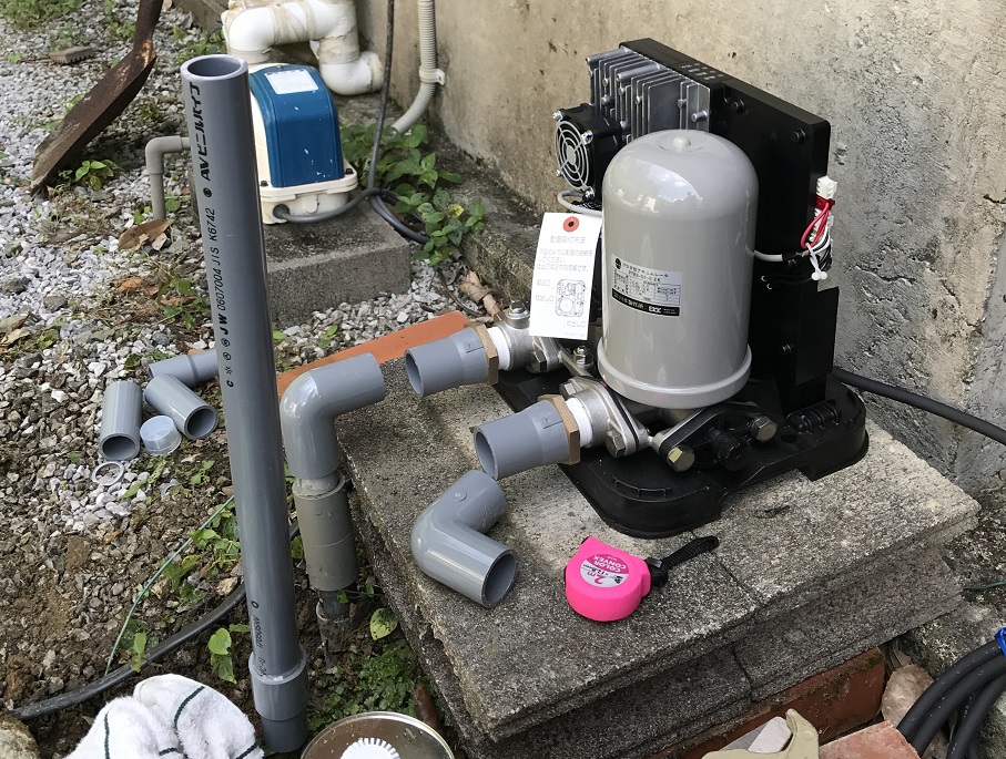 ポンプ本体の設置場所が決まったら、新しい給水パイプを組んでいきます。